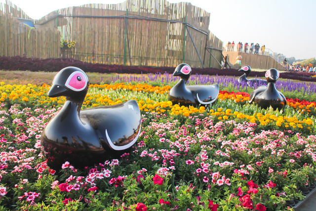 這片花海佔地很大,顏色也很鮮艷,再加上它在入口處旁,因此吸引到不少人在此拍照。 |