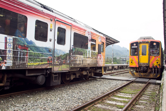 | 『十分車站』 是平溪鐵路線上最大站,也是平溪線列車的主要交會站,而火車從門前經過,更是全台最獨特的街景。 |