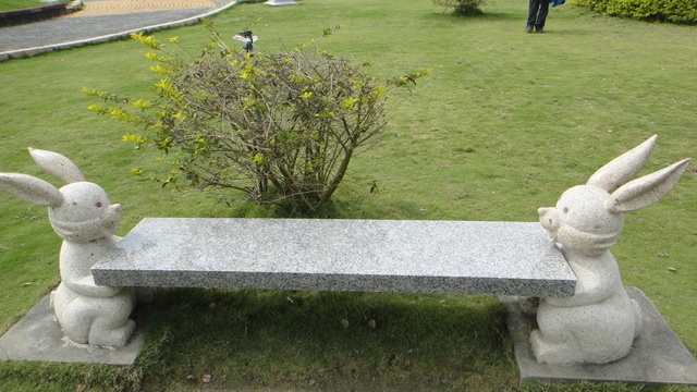 位在步道旁的休憩椅子也是很具特色,有小狗、兔子、松鼠、熊貓等,可愛逗趣的模樣。 |