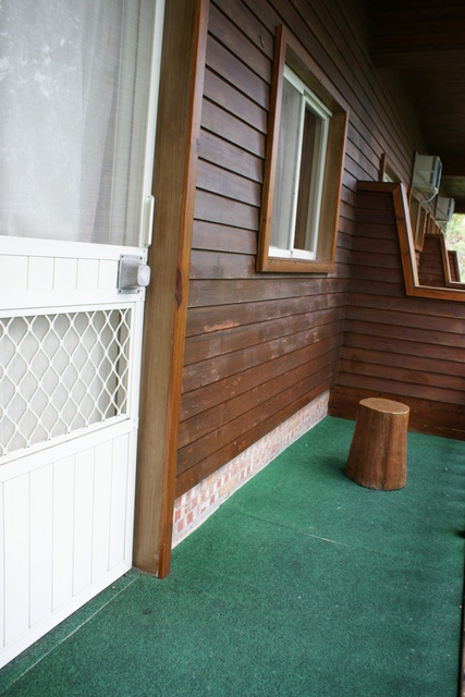 從高處遠眺我們住的紅色小木屋,看起來還蠻遠的。 |