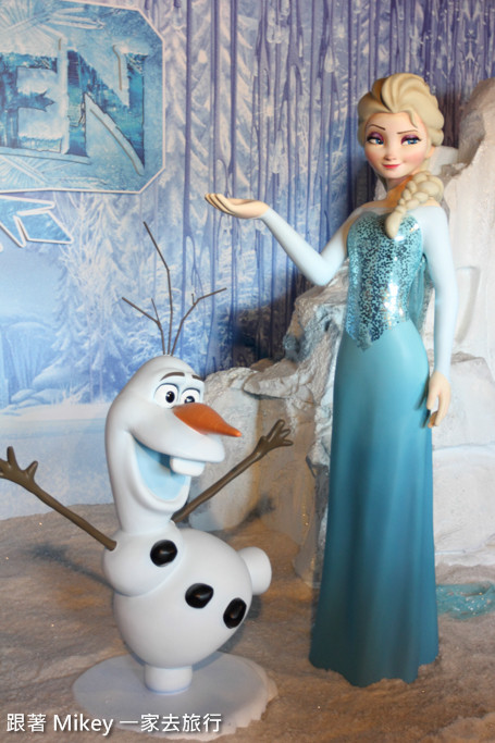 Anna、Olaf、Elsa 故事中的三大要角,站在入口處,歡迎大家一同走進她們的冰雪世界。 |