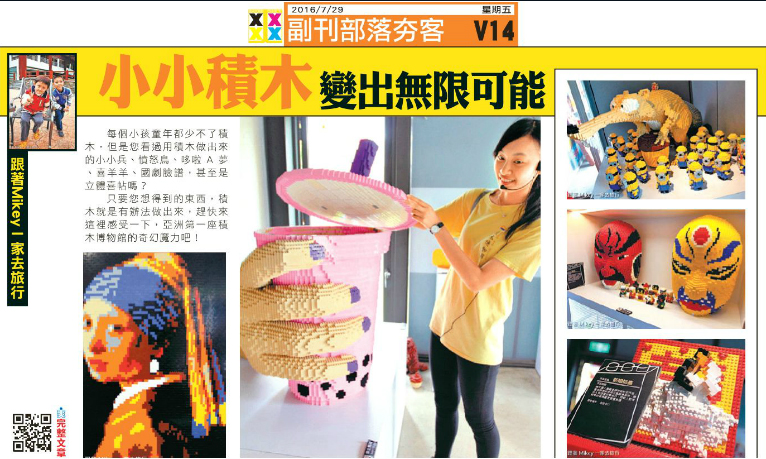 | 感謝 爽報 & 蘋果日報 在 2016.7.29 以 『 小小積木變出無限可能 』 為主題,來介紹本 Blog,真的是太感謝了。 |